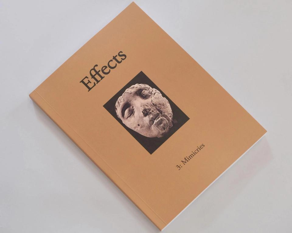 Effects is a journal of art, poetry and essays founded by Christopher Page and Orlando Reade and currently edited by Clementine Keith-Roach, Lakshmi Luthra, Christopher Page, Matt Rickard, Jeffrey Stuker, Florence Uniacke and Jan Tumlir. It is devoted to thinking about aesthetic effects, their social, political and philosophical histories and contemporary lives. It is available from selected bookshops in London, New York and Los Angeles or from www.effects-journal.com
